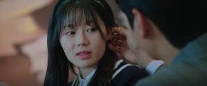 Shaken, she rushes to the restroom, locking herself inside. The scene switches between present and past—Eun-chae being bullied by older children, crying alone, and promising herself she would someday become untouchable. Her transformation into Yoon-seo was built on survival, not ambition.